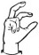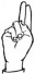 На ћирилици написано САНДРА ГРОЗДАНИЋ састоји се из 15 слова [?]. Исписано ћириличном једноручном азбуком за глувонеме:
